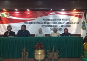 OmWARTAKENDALI.com | Kota Batu – Dalam melaksanakan program yang sudah dicanangkan dari pemerintah pusat untuk mrnyejahterahakan masyarakat desa, sesuai Instruksi Presiden (Inpres) Nomor 9 Tahun 2025 tentang Percepatan Pembetukan Koperasi Desa/Kelurahan Merah Putih, maka pemerintah Desa Pesanggrahan, menggelar Musyawarah Desa Khusus (Musdessus),melalui forum musyawarah desa, masyarakat secara bersama-sama menyepakati pendirian Koperasi Desa Merah Putih, memilih nama, dan menentukan arah usaha yang akan dijalankan.yang digelar di Aula Gedung Mayangsari, Balai Desa pesanggrahan, Kecamatan Batu, Kota Batu pada Senin malam ( 26/5/2025).