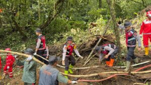 WARTAKENDALI.com | Polres Batu, Kota Batu – Kapolres Batu AKBP Andi Yudha Pranata bersama Kabag Ops, Kasat Samapta, dan Kasatlantas turun langsung memimpin proses evakuasi enam korban longsor yang terjadi di kawasan Pacet, perbatasan Mojokerto–Batu, pada Kamis (3/4/2025) sore. Longsor dipicu oleh hujan deras yang mengguyur wilayah tersebut sejak sore hari.