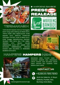 Sekarang menu favorit anda di Waroeng Bamboe bisa dibawakan untuk kolega dan keluarga besar anda. Dengan box hampers yang mewah dan cantik.