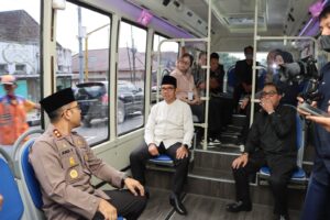 WARTAKENDALI.com | Polres Batu, Kota Batu – Kapolres Batu AKBP Andi Yudha Pranata S.H.,S.I.K., M.Si. bersama Walikota Batu, H Nurochman S.H.,M.H dan jajaran Forum Koordinasi Pimpinan Daerah (Forkopimda) melakukan uji coba shuttle bus keliling Kota Batu pada hari ini, pada Senin (17/3/2025). Bus yang digunakan untuk uji coba ini merupakan hasil karya karoseri Adi Putro dengan kapasitas maksimal 30 penumpang.