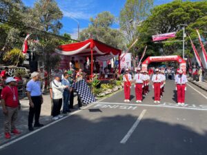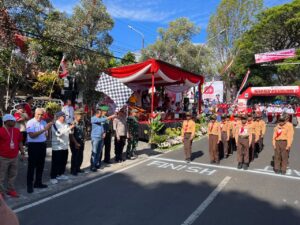 WARTAKENDALI.com | Kota Batu – Wali Kota Batu, Nurochman, memberangkatkan secara resmi Lomba Gerak Jalan Tepat Tingkat SD/MI se-Kecamatan Junrejo yang digelar dalam rangka memperingati HUT ke-80 Kemerdekaan Republik Indonesia, yang mengambil start di depan kantor Kecamatan Junrejo, Jalan RA Kartini nomor : 23 , Desa Junrejo, Kecamatan Junrejo, Kota Batu, pada Rabu (27/8/2025). Kegiatan ini diikuti oleh 21 sekolah dasar dan madrasah ibtidaiyah, dengan rute sejauh 4,3 kilometer yang ditempuh dalam waktu sekitar 51 menit.