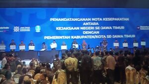WARTAKENDALI.com | Surabaya – Dalam mewujudkan sinergitas antar intansi maka Kejaksaan dan Pemerintah Daerah Jawa Timur telah melaksanakan kegiatan Penandatanganan Nota Kesepakatan Restorative Justice, Kesepakatan Bersama Pembangunan Daerah, dan Focus Group Discussion (FGD) Tata Kelola yang Baik pada Pengadaan Barang dan Jasa di Provinsi Jawa Timur. Kegiatan tersebut dihadiri oleh Dr. Kuntadi, S.H., M.H. (Kepala Kejaksaan Tinggi Jawa Timur) beserta jajaran dan seluruh Kepala Kejaksaan Negeri se-Wilayah Jawa Timur, serta Dra. Hj. Khofifah Indar Parawansa, M.Si. (Gubernur Jawa Timur) beserta para Bupati dan Wali Kota se-Wilayah Jawa Timur,kegiatan tersebut di selenggarakan di Dyandra Convention Center Jalan Basuki Rahmat No. 93–105 Surabaya, pukul 08:00 WIB, 9 Oktober 2025.