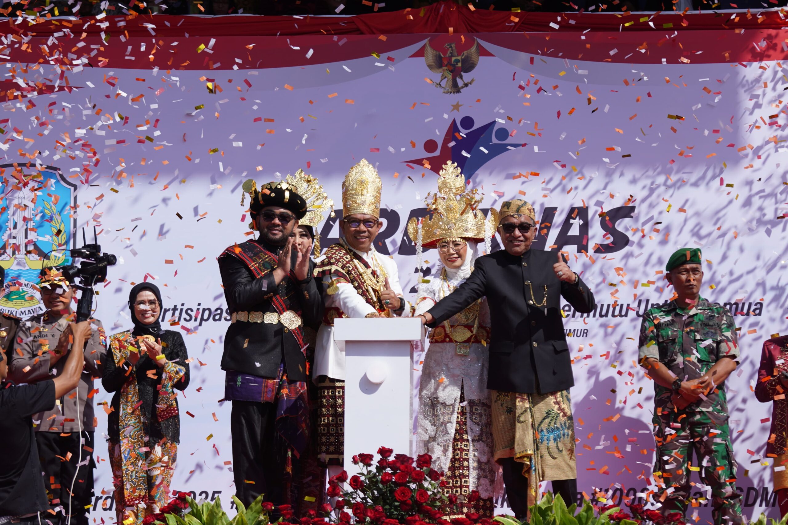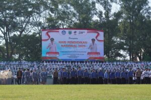 WARTAKENDALI.com | Kota Batu – Pemkot Batu menggelar Upacara Peringatan Hari Pendidikan Nasional (Hardiknas) 2025, pada Jumat (2/5/2025) di Stadion Gelora Brantas, Kota Batu. Upacara dipimpin langsung oleh Wali Kota Batu, Nurochman, dan dihadiri oleh Wakil Wali Kota Batu, Forkopimda Kota Batu, jajaran pejabat Pemkot Batu, serta Kepala Sekolah, guru dan siswa – siswi dari seluruh sekolah se-Kota Batu. Sementarai peserta upacara terdiri dari pasukan Korpri, PGRI, dan siswa-siswi SD/MI, SMP/MTs dan SMA/SMK/MA di Kota Batu.