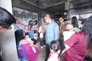 Dalam kunjungannya ini, Aries juga menyempatkan untuk berinteraksi langsung dengan para ibu dan anak-anak, serta tenaga medis yang bertugas. Selain itu juga memberikan bantuan telur yang dibagikan untuk peserta posyandu.