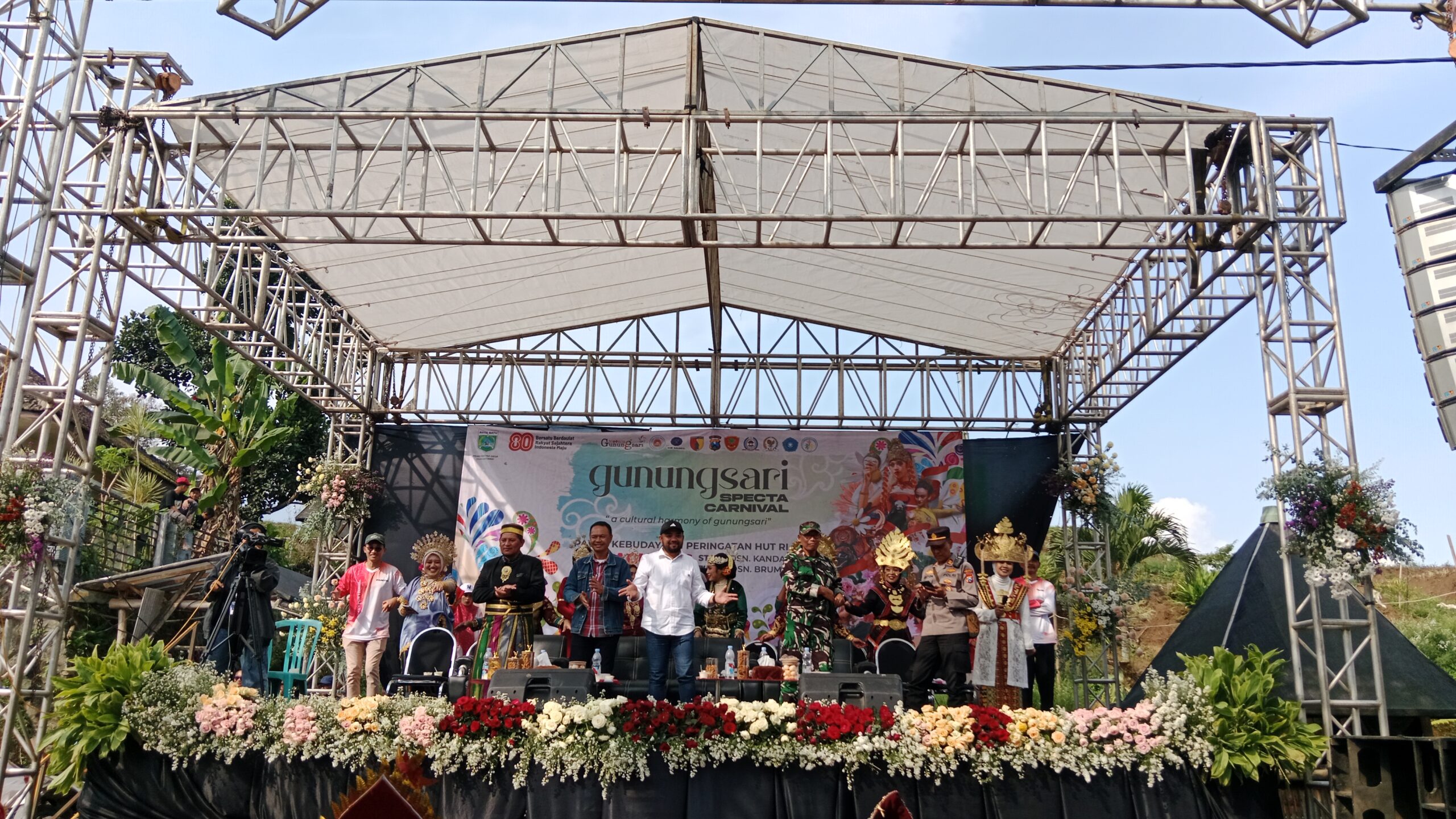” Alhamdulillah, hari ini kami masyarakat Desa Gunungsari telah melaksanakan kegiatan spekta karnival budaya dalam rangka untuk memeriahkan HUT RI ke-80, banyaknya partisipasi dari warga masyarakat ini sangat luar biasa, memang kalau kita tidak membatasi pesertanya mungkin waktunya akan terlalu lama, dan alhamdulillah, yang ikut ini ada 50 kontingen dengan berbagai macam kesenian budaya lokal dan mobil hias, serta berbagai kreatifitas kesenian anak muda, semoga dengan adanya rangkaian kegiatan pawai budaya ini warga masyarakat Gunungsari lebih Guyub rukun serta kegiatan ini akan menjadi sarana hiburan, edukasi, dan pemberdayaan ekonomi masyarakat, serta bentuk komitmen pemerintah Desa dan komunitas untuk menjaga dan mengembangkan identitas budaya lokal,” tandasnya kepada awak media. (red).