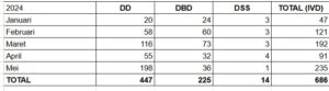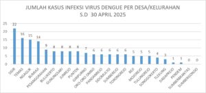 Kepala Bidang Pencegahan, Pengendalian Penyakit dan Penanganan Bencana Dinas Kesehatan Kota Batu dr. Susana Indahwati (KMK), CPRM., menjelaskan Total Kasus DBD dari Januari – April 2025 : 66 kasus, sedangkan total kasus DBD Januari – April 2024 : 189 kasus.