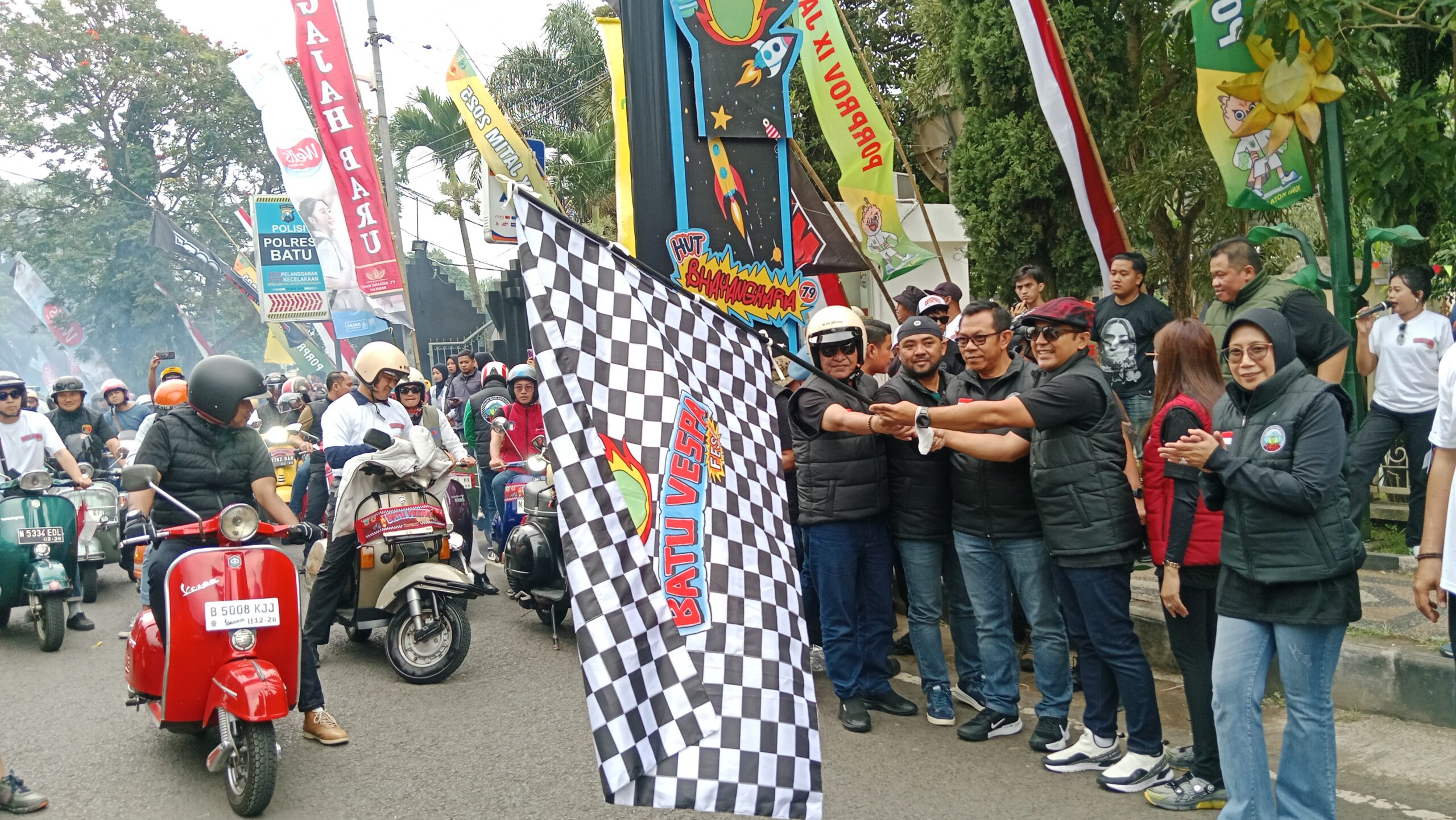 WARTAKENDALI.com | Polres Batu, Kota Batu – Dalam menyambut Hari Ulang Tahun (HUT) Bhayangkara ke-79 Polres Batu Gelar Touring Batu Vespa Fest 2025 untuk keliling Kota Batu, yang di ikuti hampir 500 peserta yang sangat antusias mengikuti jalan pelepasan touring Vespa Batu Bersatu, turut hadir juga Wali Kota Batu Nurohman dan Wakil Wali Kota Batu Heli Suyanto, beserta Jajaran Forkopimda Kota Batu adapun peserta dari Kota Batu dan Malang Raya, ada yang datang dari luar Kota Propinsi, seperti ada yang datang dari Jawa Tengah, Jawa Timur dan Bali. Pelepasan Touring Vespa Batu Bersatu teesebut digelar di depan marko Polres Batu, jalan AP III Kadjoeng Permadi Kecamatan Batu, Kota Batu, pada Sabtu (28/6/2025).