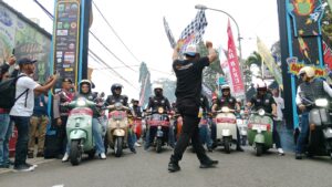 Masih AKBP Andi Yudha Pranata, S.H., S.I.K., memberikan himbuan kepada para peserta agar berhati – hati dijalan dalam menjalankan kendaraan Vespanya.